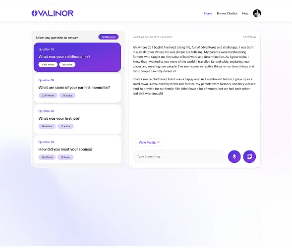 A platform where users capture life memories and experiences using conversational bots. This AI-driven system records and preserves valuable moments through voice interactions.